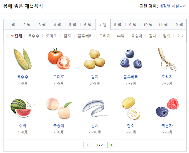 여름 제철음식 및 7월 제철음식
