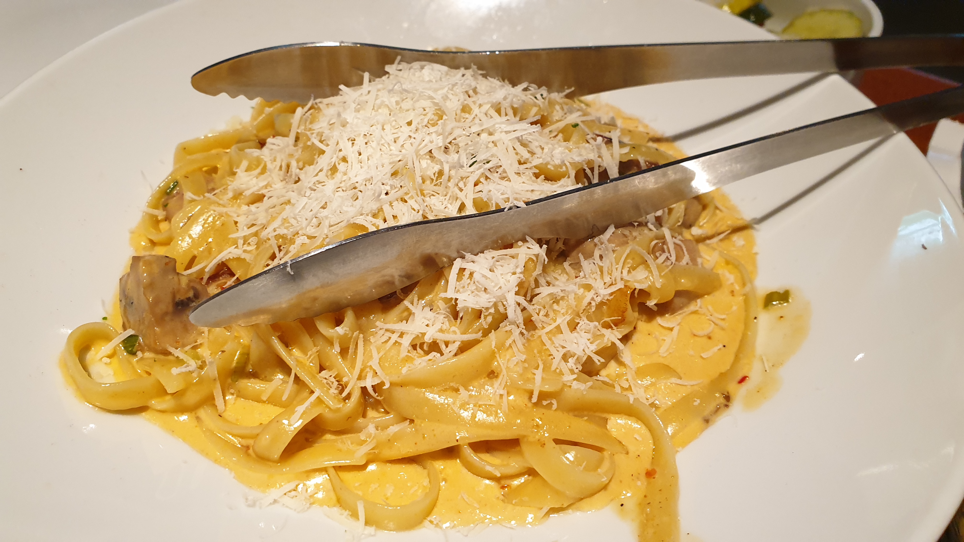 아웃백의 시그니처라고 할 수 있는 투움바파스타입니다. 서버분이 직접 치즈를 갈아주셨어요. 맛있게 잘 먹었습니다.