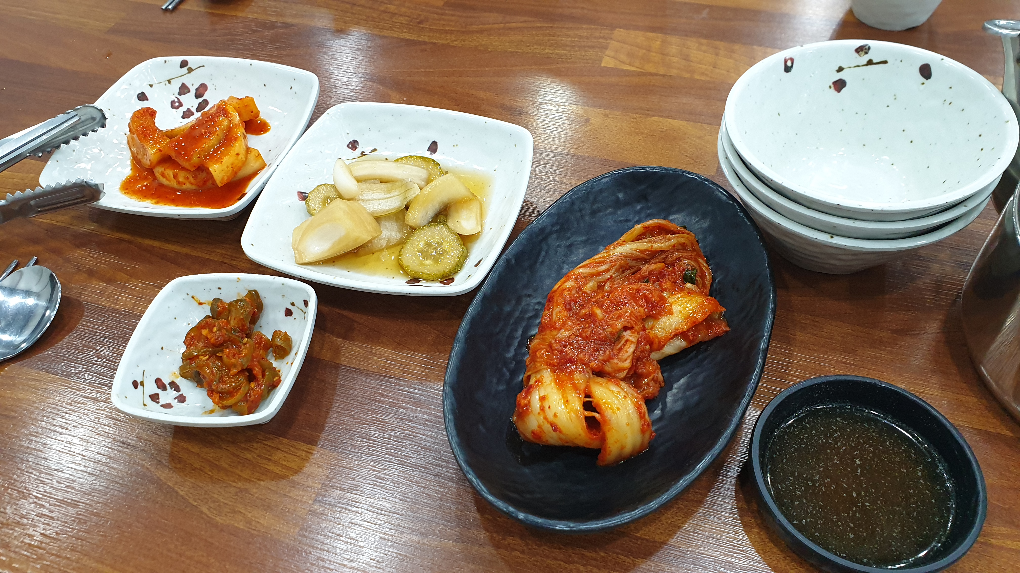 처음 제공해주는 밑반찬입니다. 김치와 장아찌류들입니다. 추가는 셀프로 자유롭게 먹을 수 있습니다.