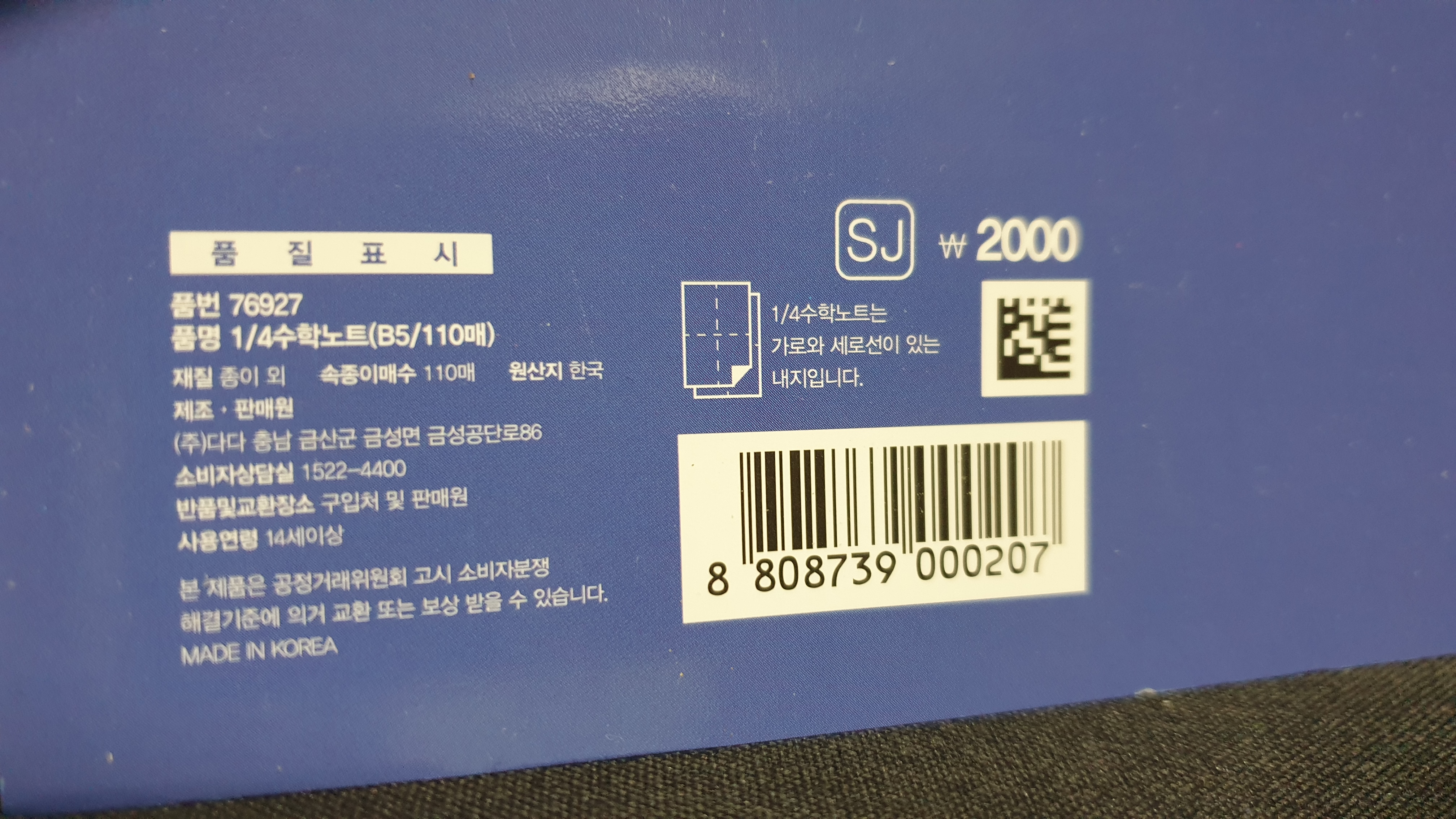 수학 문제에 용이하게 4 분할된 노트입니다.