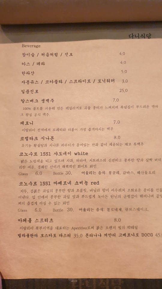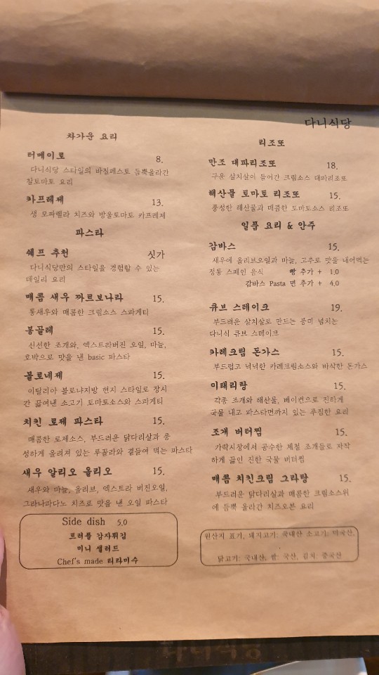 사장님의 요리에 대한 사랑, 손님에 대한 배려가 돋보이는 메뉴판입니다.