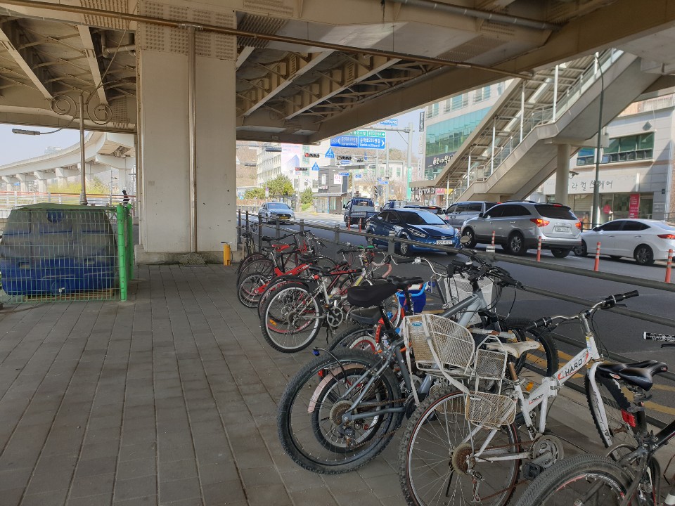 출퇴근 길에 쓰는 자전거를 보관해놓은 걸까요? 아니면 주변에 잠시 들렀다가 보관해놓고 가는걸까요? 간혼 상태가 오래되어서 버리고간 자전거처럼 보이는 것들이 있는데 이는 미관상 좋지 않으니 회수해 갔으면 좋겠네요. 버려진 부품들을 재사용해서 환경적인 문제도 해결하면 좋겠습니다. 저는 예전에 자전거를 아파트 공용보관소에 걸어두고 왔다가, 어떤 놈이 안장을 훔쳐간 사건을 겪었습니다. 그래서 그 후로는 절대로 공적인 보관소에는 맡기지 않고 있어요. 지금도 생각하면 열이 나서 다 때려부서버리고 싶네요.