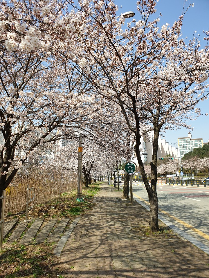 경안천을 타다가 위쪽 거리에 너무나도 아름다운 벚꽃에 홀려서 올라오게 되었습니다. 코로나 때문에 줄 곧 집에서 나가지 못했던 주말을 생각하면 오늘은 로또에 당첨된 기분입니다. 잠시 흐르는 땀을 식히면서 벚꽃을 천천히 구경하였습니다. 천천히 벚꽃 나무 사이를 걷고 있으면 무슨 시상식 레드카펫을 걷는 것처럼 기분이 업되고 좋았습니다. 같이 걸을 사람이 있었다면 정말 좋았겠네요.