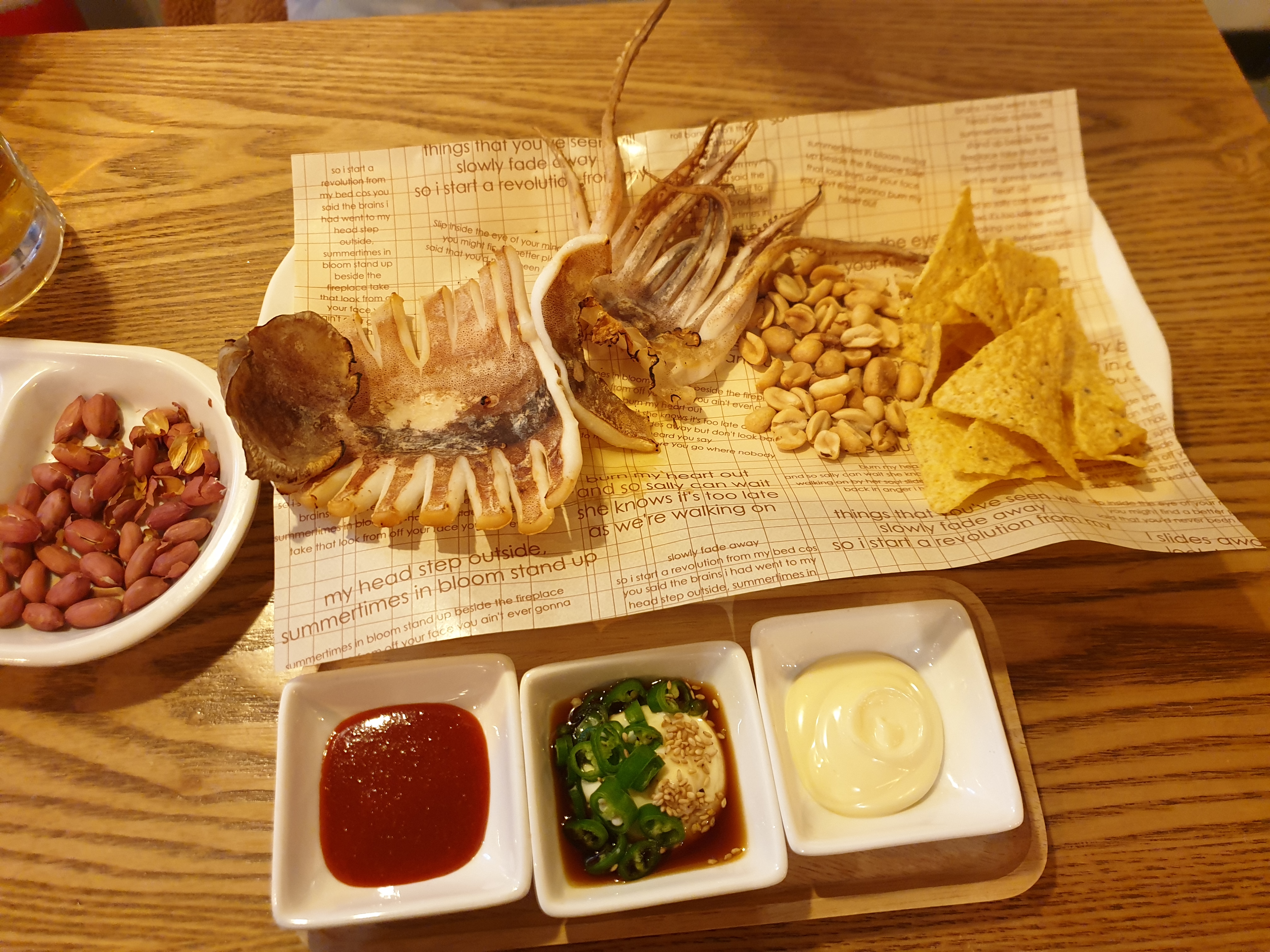 저희는 예전에 한치와 땅콩을 맛있게 먹었던 적이 있어서 이번에는 반건조오징어를 주문했습니다. 그리고 맥주 500cc도 같이 주문했습니다.