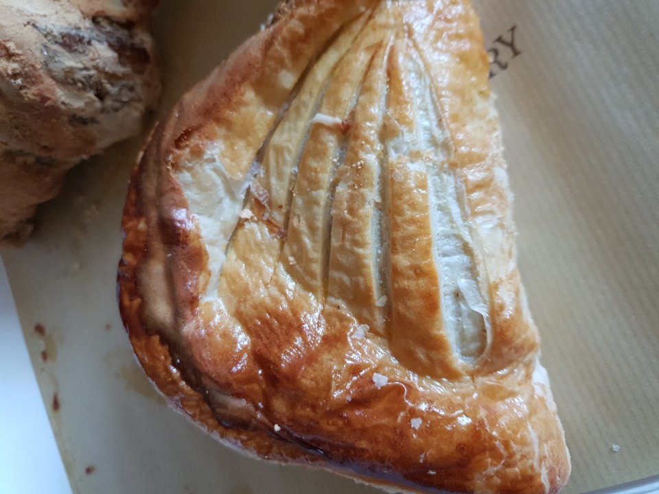 세 가지 빵을 담아왔습니다. 일단 이집의 시그니처인 페스츄리를 활용한 사과파이와 초대형 인절미 떡 같인 생긴 크루아상 그리고 커피와 먹으면 맛탱이인 치즈 스콘입니다.