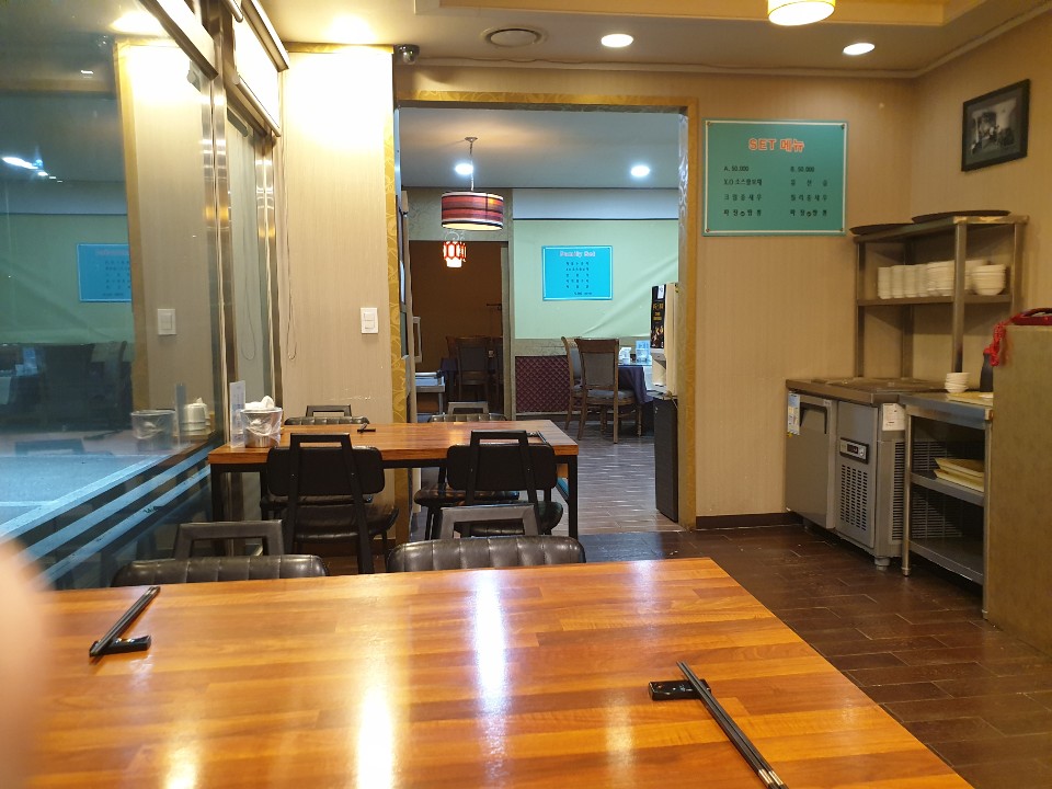안쪽에는 원형테이블이 있습니다. 또한 방이 하나 있어서 모임을 가지기에도 좋을 것같습니다. 추가로 제공되는 반찬은 셀프는 아니고 말하면 가져다 줍니다.