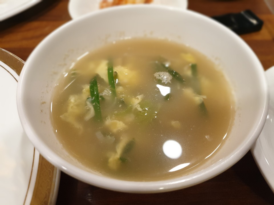 짬뽕국물이 아닌 계란국을 내주었습니다. 계란 사이에 부추가 들어가 있어서 색감과 식감을 모두 잡았습니다. 매운걸 잘 못먹는 저의 식성을 알았던 걸까요? 기쁜 마음으로 한 숟가락 떠봅니다. 하지만 아쉽게도 제 입맛에는 너무 짜더라구요. 조금만 간을 약하게 했으면 어땠을까 싶네요.