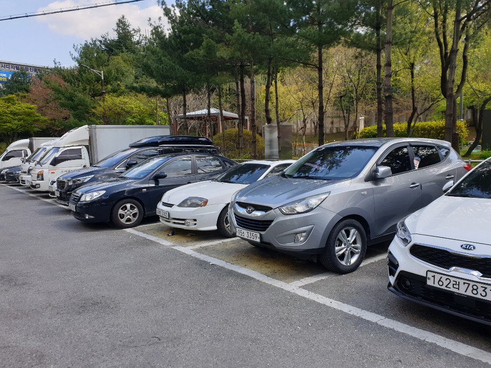 주차공간은 그렇게 넓은 편이 아녔습니다. 또한 경차 배려 공간이라고 만들어져 있는 곳에도 SUV 차량이나 대형차들이 주차하는 바람에 주차가 쉬운 편이 아닙니다. 또한 앞차와의 공간이 좁아서 차를 돌리기에 매우 부담스러운 각도가 나옵니다. 평소보다 훨씬 더 크게 차를 돌려야 주차가 가능합니다.