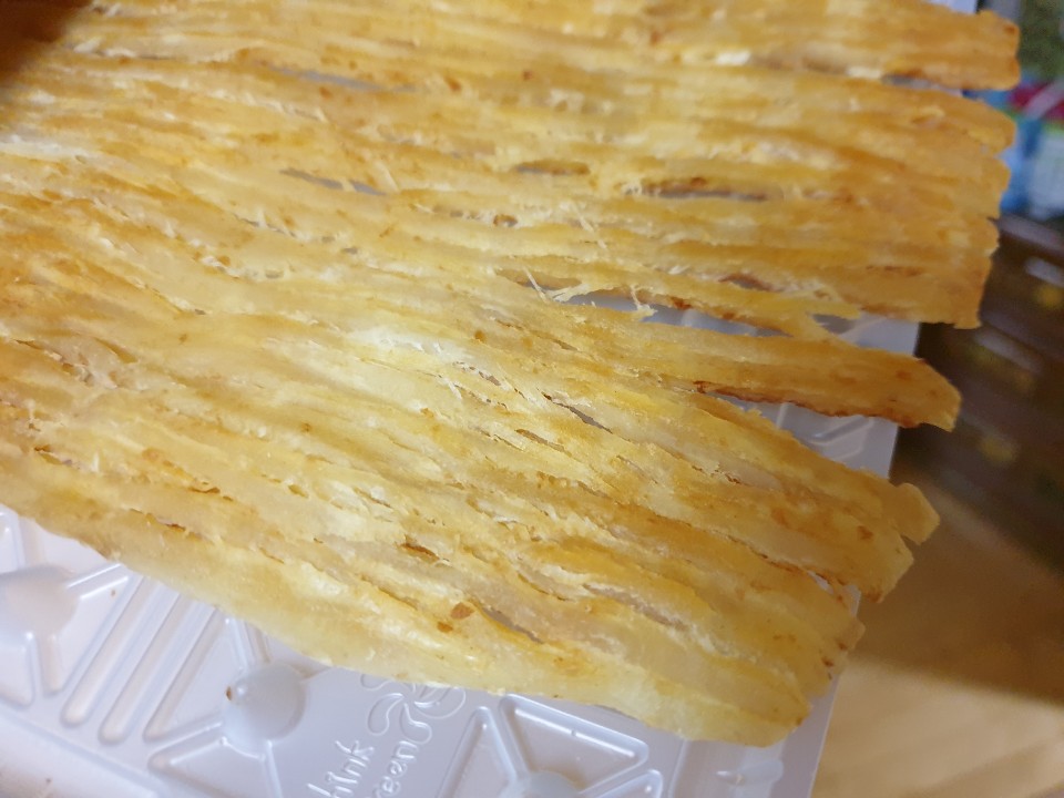 양념이 사실 좀 거북스러운 느낌이 있습니다. 구워서 냄새를 없애는편이 좋을수도 있겠네요. 버터가 너무 인위적인 향이 강해서 저는 손이 가질 않았습니다. 그래도 느끼한걸 좋아하시는 분들은 잘 먹을것 같에요. 한줄씩 뜯어먹기 좋게 갈라져있네요.
