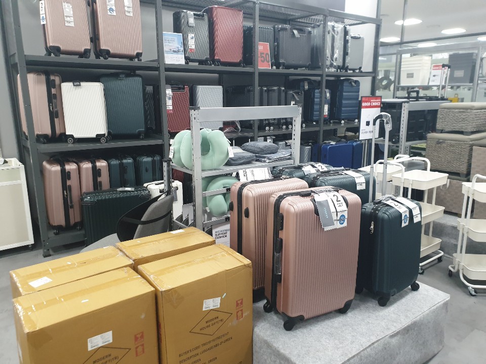 여행용 캐리어를 진열해두었습니다. 생각보다 비싼것 같아요. 원래 캐리어같은 제품이 가격다운이 별로 되지 않는 상품이라서 그런 것 같습니다.