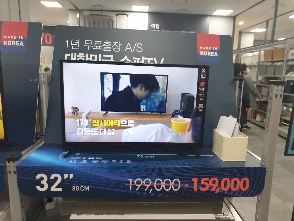 새TV를 143,100원에 구입할 수 있는 미친 기회입니다. 저도 지금 돈만 있었다면 바로 질렀을 것 같습니다. 보통 이런 제품은 중소기업에서 만든 제품일텐데, 중소기업이 가장 걱정되는 것은 AS입니다. 하지만 여기는 1년 무료출장 AS를 제공하고 있어서 마음이 놓이네요. 지금 정부에서 1등급 효율 제품은 10%환급해주니 1석2조입니다. 해마다 올라 가는 전기요금을 줄이고자 하는 시도인것 같아요. 여름만 되면 전력이 부족하다고 난리니 그럴만도 합니다. 하지만 정작 전기 먹는 하마는 가정용 전기가 아닌 기업에서 사용하는 공업용 전력수요일텐데.... 누진세도 적용 안하니 당연히 막 쓸 수 밖에요. 여름에 문열어놓고 에어컨 빵빵하게 틀어놓는 가게들이 허다합니다.