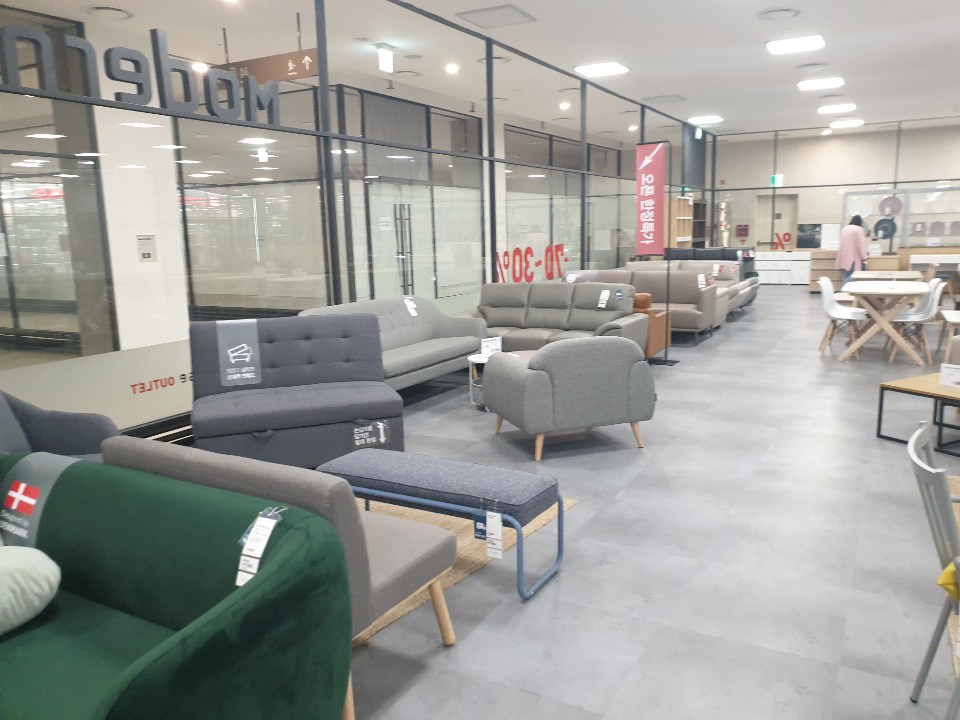 여러가지 쇼파들을 한눈에 볼 수 있었습니다. 아울렛이라고 해서 싸구려 제품이라고 생각하시면 안됩니다. 유명 수입가구 제품을 판매하던 회사기 때문에 퀄리티가 상당합니다. 거기에 전시상품인데 가격은 50%이하로 판매되고 있습니다. 이런곳은 가구를 어느 정도 볼줄알면 땡잡기 좋은 곳이라고 생각합니다. 따로 눈치주는 사람없이 편하게 구경할 수 있는 분위기 입니다. 물론 앉아보셔도 됩니다.