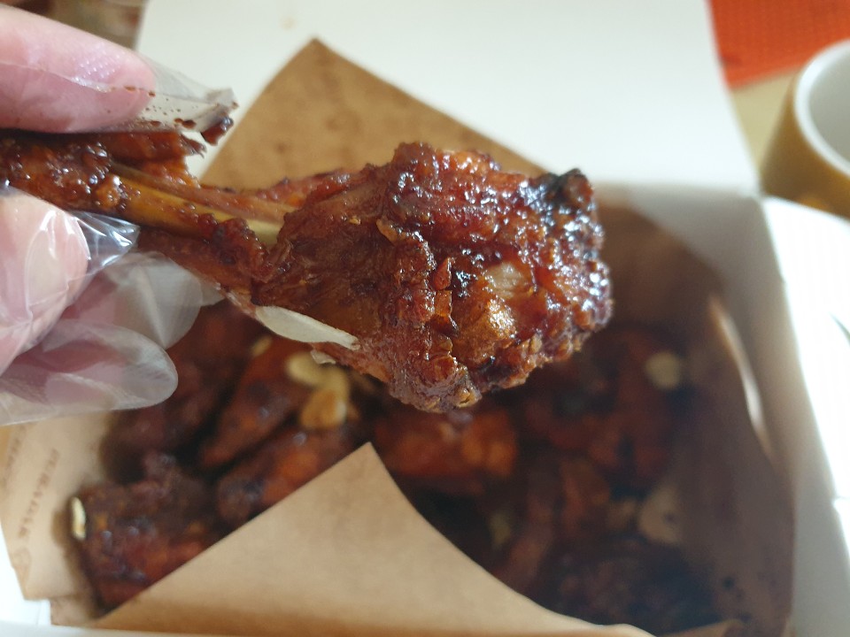 닭다리를 보면 치킨이 그렇게 크지는 않습니다. 그렇다고 다른 가게에 비해서 또 작은 것은 아닙니다. 평범한 사이즈라고 보시면 됩니다. 저의 간장치킨의 기준점은 BHC의 맛초킹이였습니다. 딱 비교해서 말씀드리자면 블랙알리오가 훨씬더 강한 맛이라고 보시면 됩니다. 맛초킹은 부드러운 맛인데 반해서 이것은 한입먹으면 짠맛이 좀더 강하게 훅들어옵니다. 중독성있게 소스를 배합해서 계속해서 땡기는 맛입니다. 특히 퍽퍽살 부분을 먹을때가 인상적이였습니다. 보통의 닭가슴살을 퍽퍽해서 잘 먹지 못하는데 반해 여기는 오븐에 전처리를 해서 촉촉함을 유지했습니다. 그래서 가슴살 부분을 찢어서 남은 소스부분을 묻혀서 먹으니 정말로 맛있었습니다.