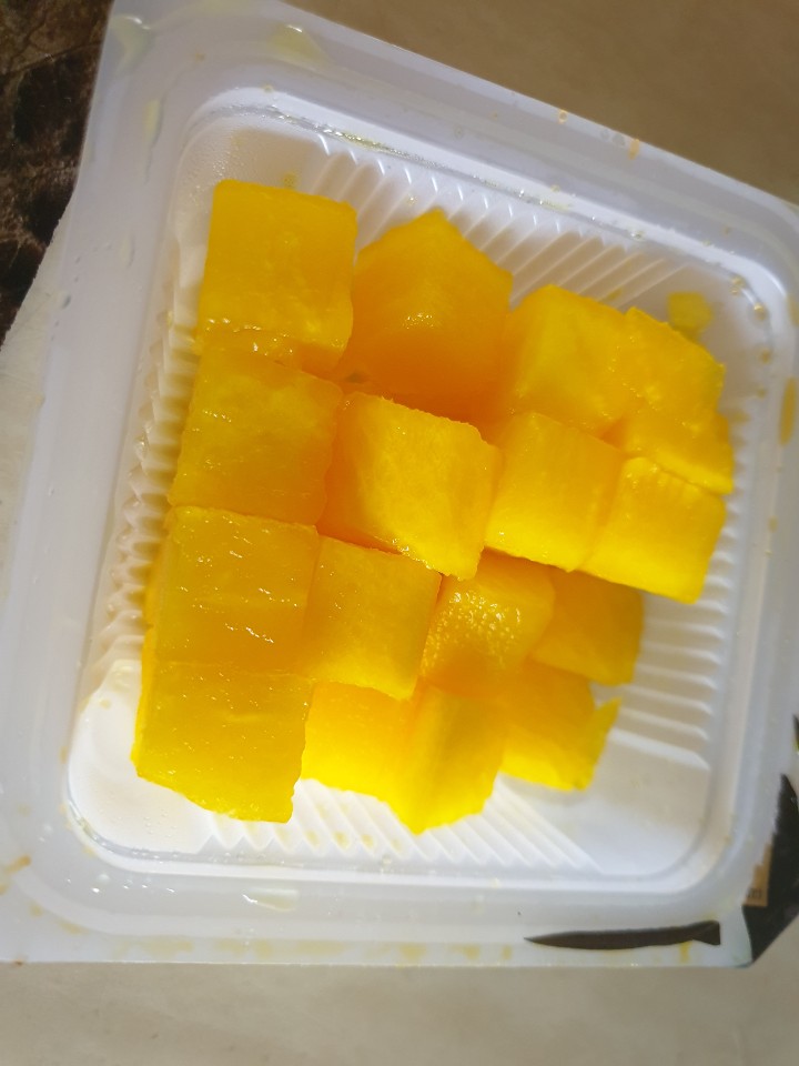 김밥 단무지 같은 맛입니다. 조금 실망했습니다. 치킨무는 신맛이 확 느껴지면서 치킨의 느끼함을 없애줘야하는데 맛이 약해서 조금 단조로운 느낌을 지울 수가 없었습니다. 김밥에 들어간다면 적당했겠지만, 너무 부조화스러웠습니다. 색깔만 바꾼다고 해서 사람들이 눈이 돌아가지는 않을 겁니다.