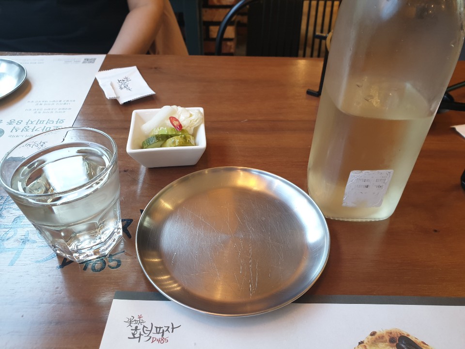 식전 테이블 세팅입니다. 피클과 무는 추가로 먹고 싶다면 셀프로 준비해야합니다. 물은 같이 갔던 분들이 보리차물이라고 하는데 저는 왜 레몬맛이 났을까요? 은색접시를 줘서 모던한 느낌이 나네요.