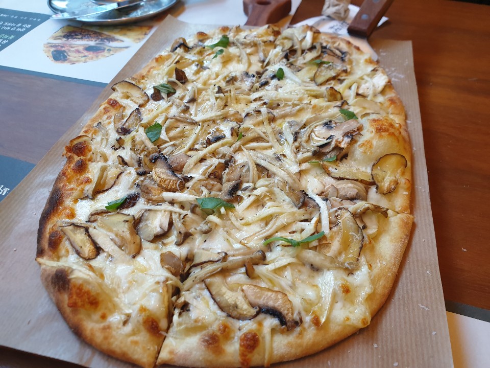 추가로 주문한 트러플 풍기 피자입니다. 로마식 피자로 반죽부분이 조금 다릅니다. 좀더 쫄깃한 반죽이 일품입니다. 트러플 향과 버섯의 향이 오묘한 조화를 이루면서 풍미가 끝내줍니다. 또한 올리브오일이 베이스라서 한입먹으면 육즙처럼 즙이 나옵니다. 버섯을 좋아하시는 분들은 꼭 드시기 바랍니다.