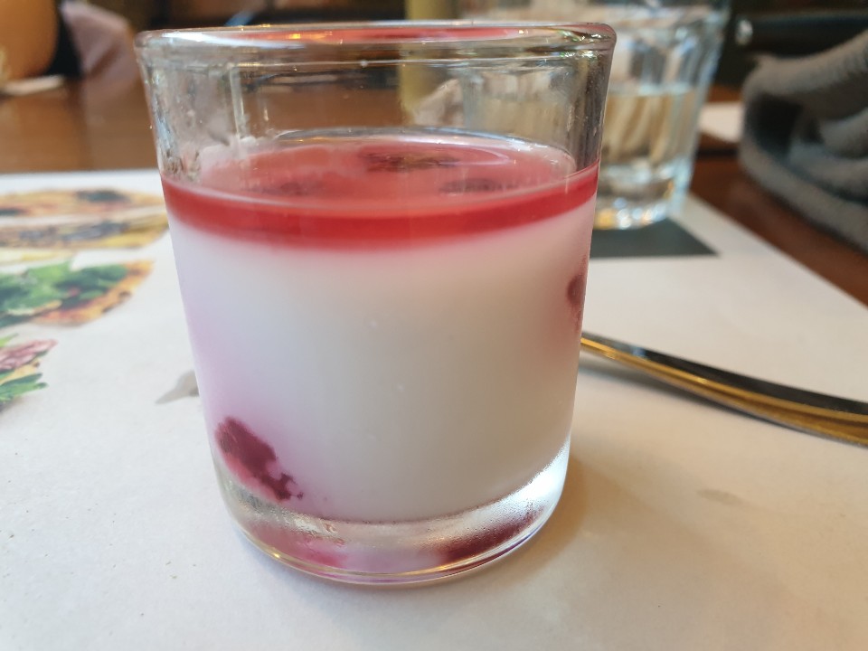후식으로 무료로 제공되는 푸딩입니다. 여성분들이 환장할 만한 맛입니다. 위에 빨간색부분은 시럽이라고 보시면 됩니다. 달달하면서 라즈베리의 씹는맛이 느껴지고 푸딩이 부드럽게 넘어갑니다.