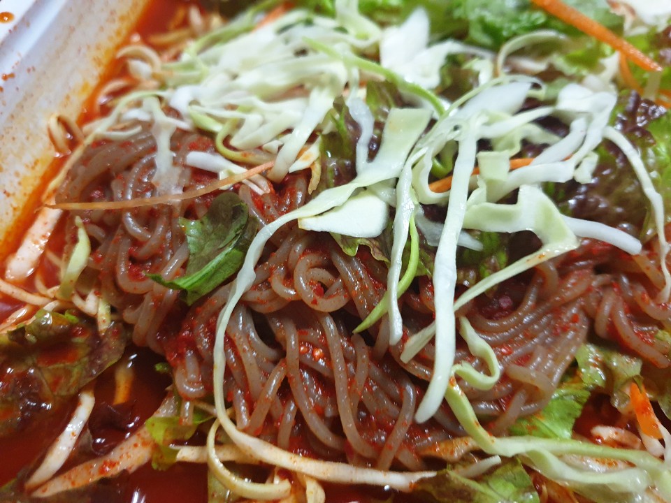확 땡기는 맛의 쟁반국수는 아닙니다. 소스와 면이 잘 달라붙어서 입에 들어와야 하는데 조금 아쉬웠습니다. 그래도 고기랑 같이 먹기에는 나쁘지 않았습니다.
