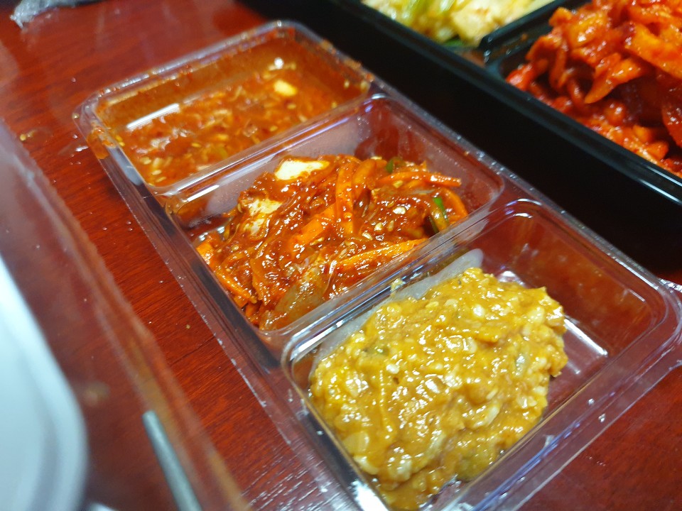 무말랭이가 조금 특이합니다. 딱딱하게 완전히 말린 무가 아닌 반건조? 무인것 같습니다. 저는 김치류 중에서는 백김치가 가장 맛있었습니다. 족발을 먹다보면 어느 순간 목이 퍽퍽해지는 느낌이 있는데 김치를 먹으면 시원하게 물이 나오면서 좋더라고요.
