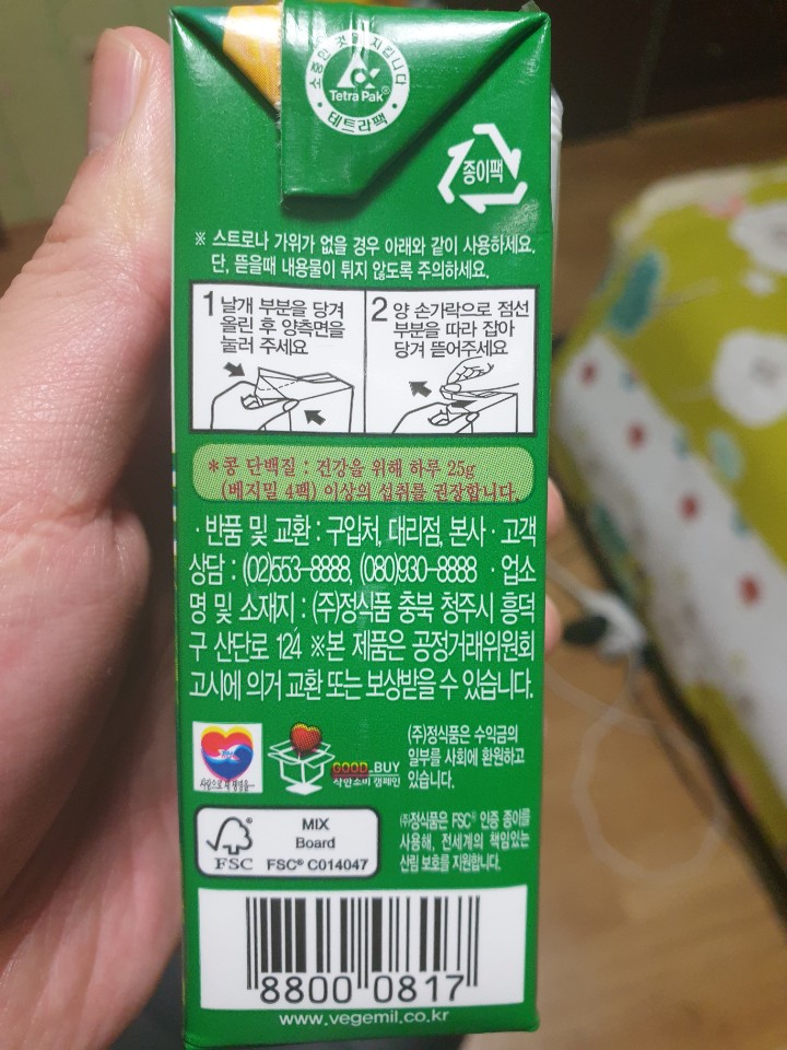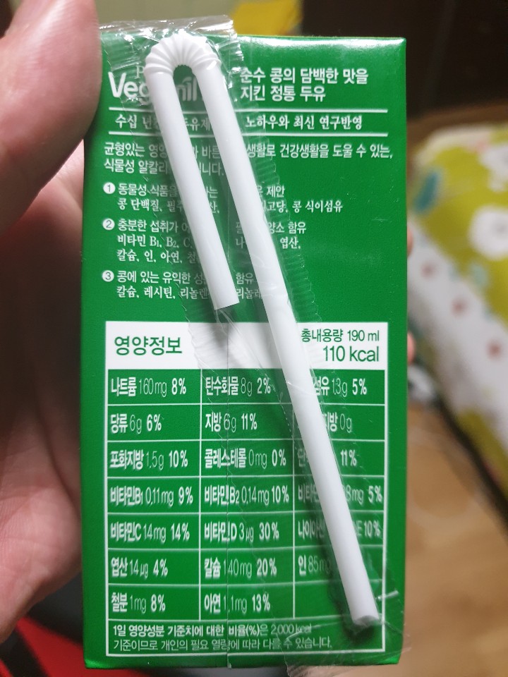 빨대나 가위가 없어도 먹을수 있도록 만들어놓았습니다. 몇 십년동안 먹어왔는데 이런 방법이 있다는 사실을 오늘 처음 깨달았네요. 두유로 건강하게 단백질을 보충하셔서 건강을 지키셨으면 좋겠습니다.